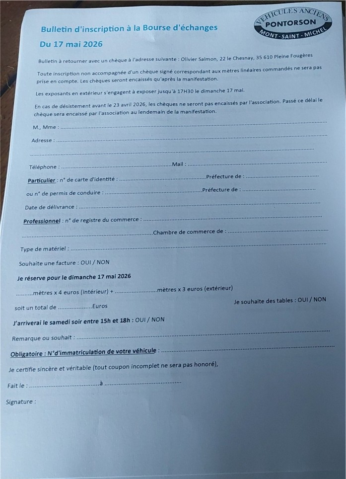 7ème Bourse d’Echange le 17 mai 2026 à Pontorson Mt St Michel (50)